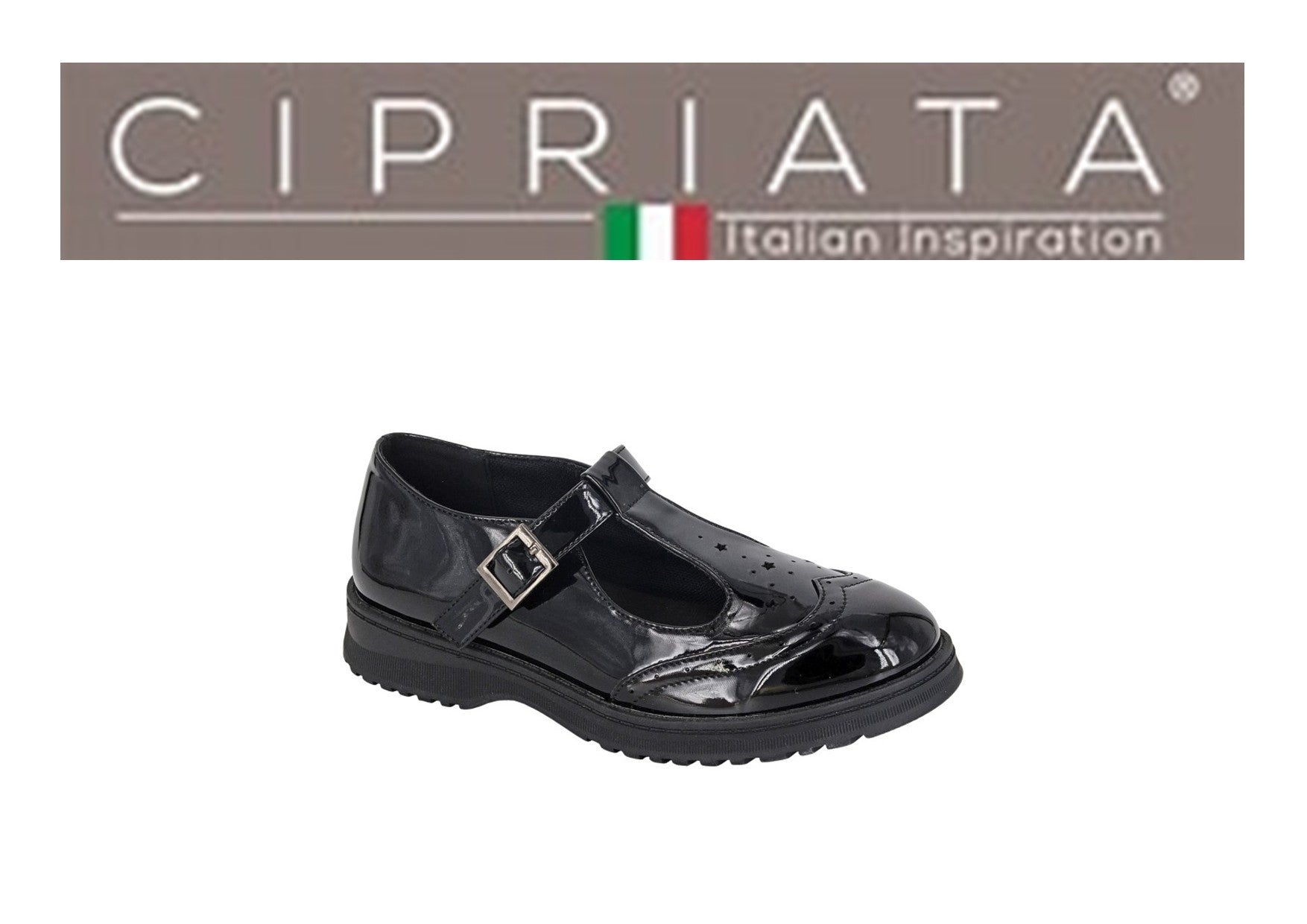Childrens T Bar Brogue Black Patent Buckle Shoe (G724AP)