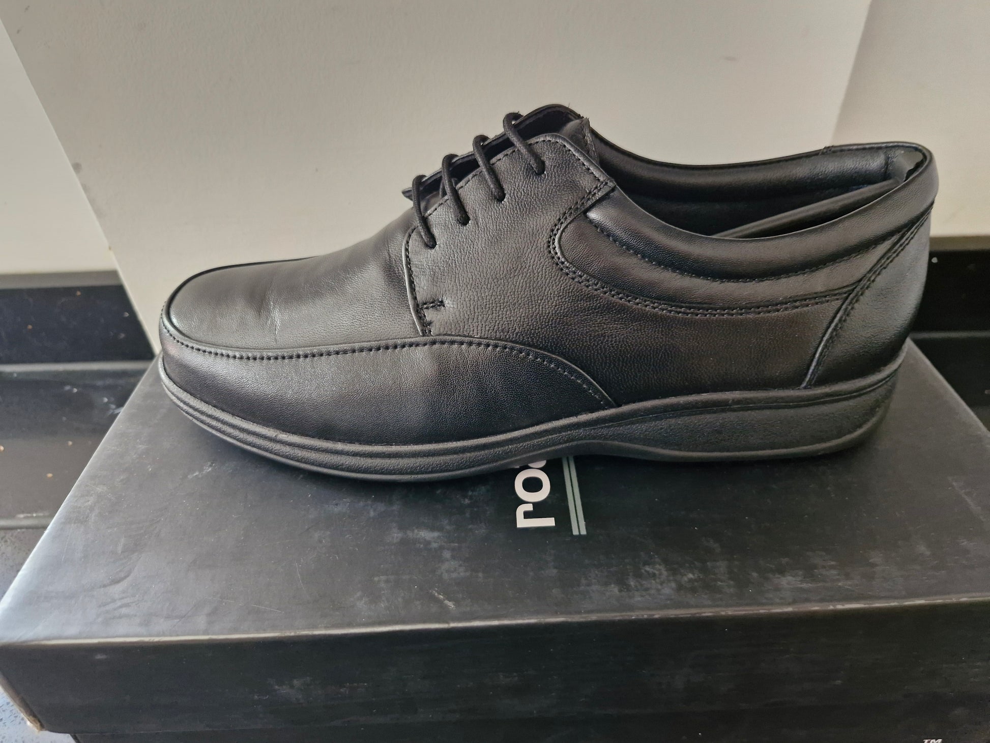 2. Roamers Black Soft Leather Square Toe Shoe Size 6 (M848A)